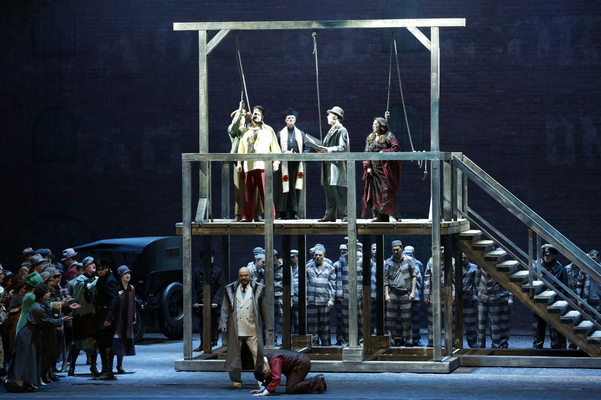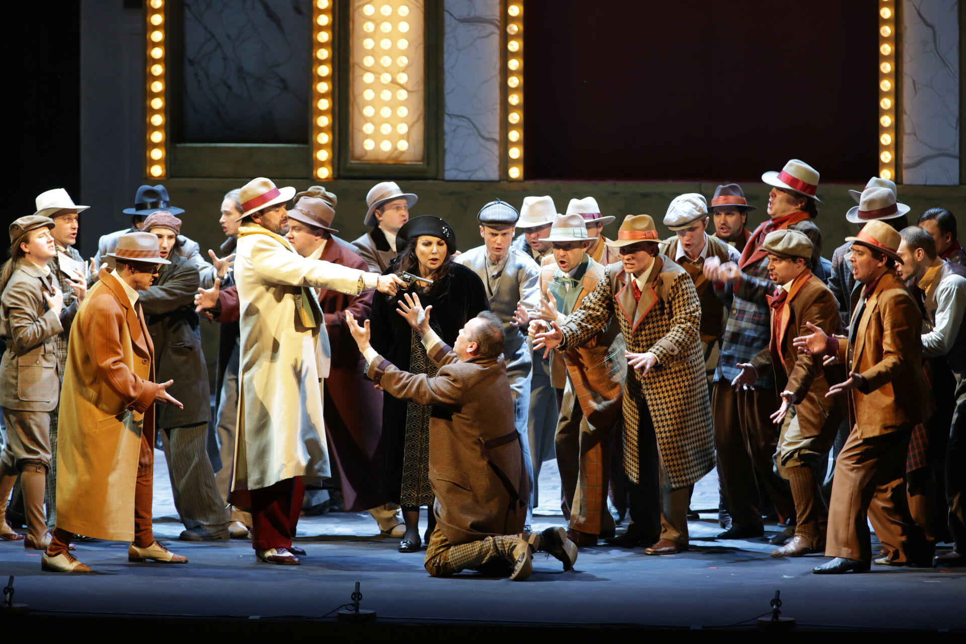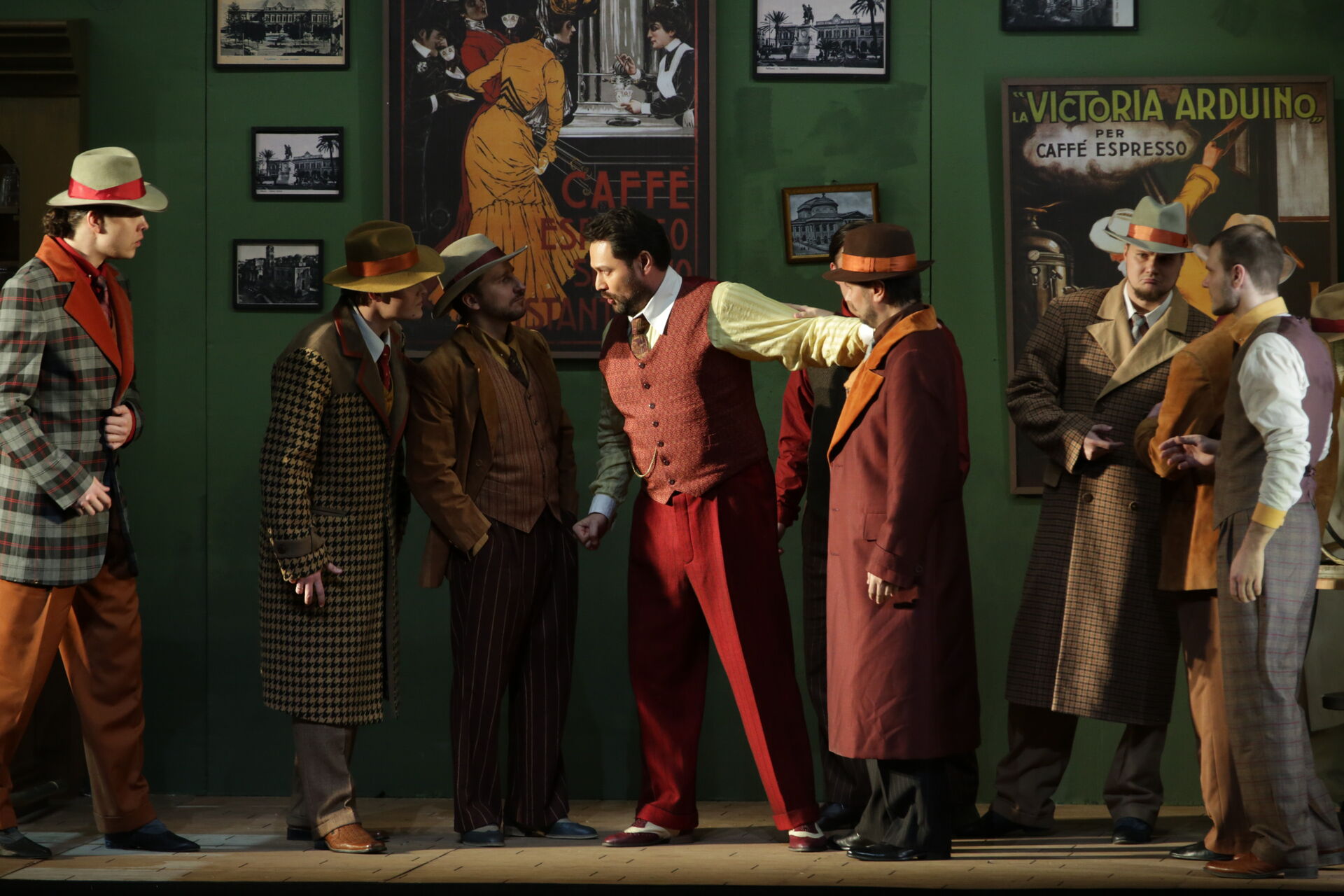 Постановка режиссера Арно Бернара переносит действие с Сицилии XIII века в Нью-Йорк – в эпоху, знакомую по фильмам «Крестный отец» и «Однажды в Америке». Предусмотренная оригинальным либретто борьба сицилийцев против захватчиков – французов в спектакле Бернара оборачивается борьбой итальянских иммигрантов за осуществление своей американской мечты. Страна равных возможностей не встречает новых граждан с распростертыми объятиями: полиция Нью-Йорка коррумпирована настолько, что нарушение сицилийцами законов их новой родины становится неизбежным злом. Продажный комиссар Монфор и противостоящий ему беспринципный глава мафии Прочида, фанатичная мстительница Елена и влюбленный в нее максималист Арриго – все показаны в спектакле без прикрас.