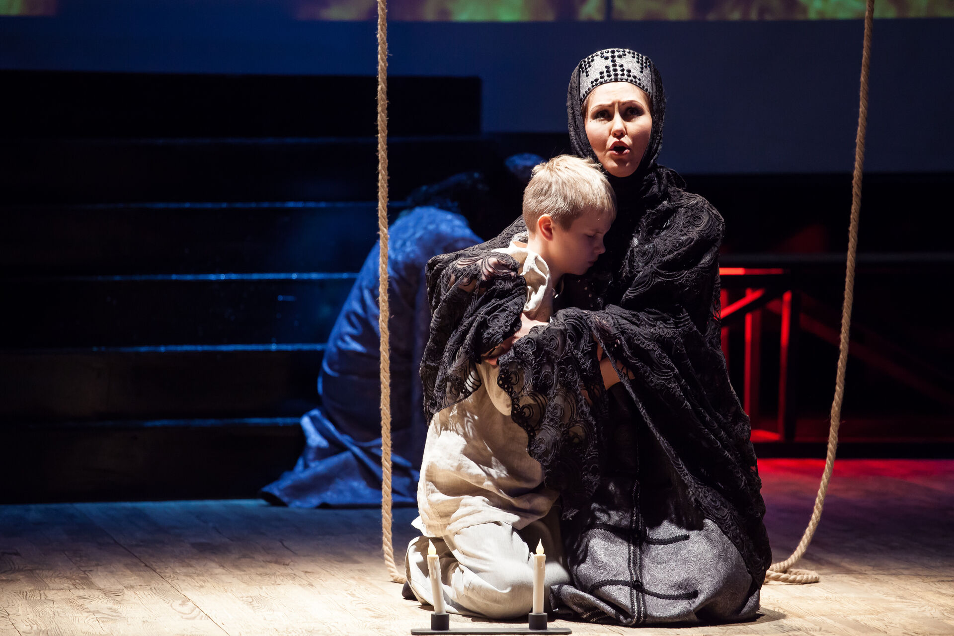 Постановка оперы Родиона Щедрина «Боярыня Морозова» на сцене концертного зала «Филармонии-2» станет ярким событием IV Международного открытого фестиваля искусств «Дню победы посвящается...», тема которого – «У войны не женское лицо». Постановка осуществлена красноярским хоровым ансамблем «Тебе поемъ» под руководством заслуженного деятеля искусств России Константина Якобсона. Первая постановка оперы «Боярыни Морозовой» состоялась 24 января 2015 года в Красноярске, во время закрытия Зимнего Суриковского фестиваля искусств (режиссер – заслуженный артист РФ Василий Вавилов) и получила восторженные отклики прессы, а главное – благожелательный отзыв Родиона Константиновича Щедрина, который в течение 8 лет неоднократно говорил о своем желании увидеть сценическую версию произведения. На сегодняшний день постановка красноярского коллектива «Тебе поемъ» является единственной сценической версией «Боярыни Морозовой». Для воплощения русской хоровой оперы удивительно точно была найдена форма сценической реализации оперы – хоровой театр. Именно в этом направлении давно и успешно работает хоровой ансамбль солистов «Тебе поемъ». Лаконичная в сценическом оформлении постановка отражает основные акценты оперы Щедрина и заставляет задуматься об истории русского народа, в которой трагические события становятся уроком будущим поколениям. Постановка включена в концертный репертуар коллектива и с успехом была показана в Красноярске и городах Красноярского края.