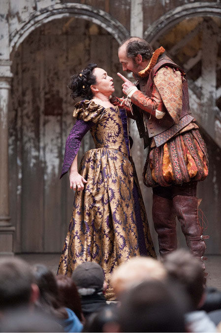 С пресловутой «народностью» пьесы зритель сталкивается ещё на подходе к «Глобусу» – в образе пьяного вдрабадан медника Слая, которого режиссёр Фроу остроумно нарядил в майку фаната сборной Англии по футболу. Этот пролог отсылает к другому знаменитому «Укрощению» – постановке Королевской Шекспировской компании 1978 года, в которой режиссёр Майкл Богданов заставил Джонатана Прайса шокировать публику пьяными эскападами и крушить декорации на сцене. Сорок лет назад потрясенные зрители вскакивали с мест и бежали звонить в полицию; искушенная публика нашего времени лишь посмеивается над поддатым мужланом.