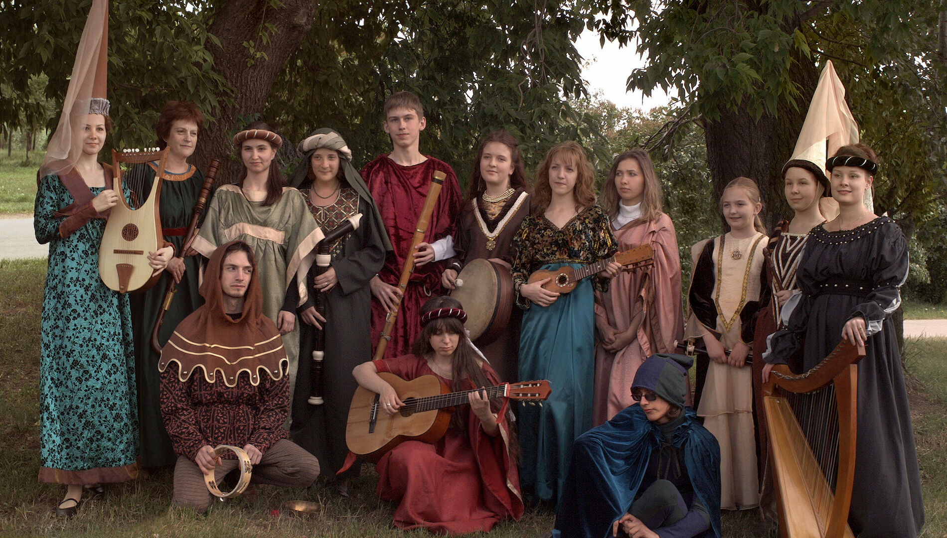 Татьяна Скитикова (вокал, кугиклы, скрипка)Елена Сергеева (вокал, кугиклы, бубен, гудок)Сергей Жирков (вокал, гусли, новгородская балалайка, колёсная лира, калюка, владимирский рожок, дудка)Павел Скитиков (вокал, губная гармошка, калюки, балалайка, гармошка, гитара, рожок, бубен, коса)Александр Кондюрин (вокал, калюки, варган)
