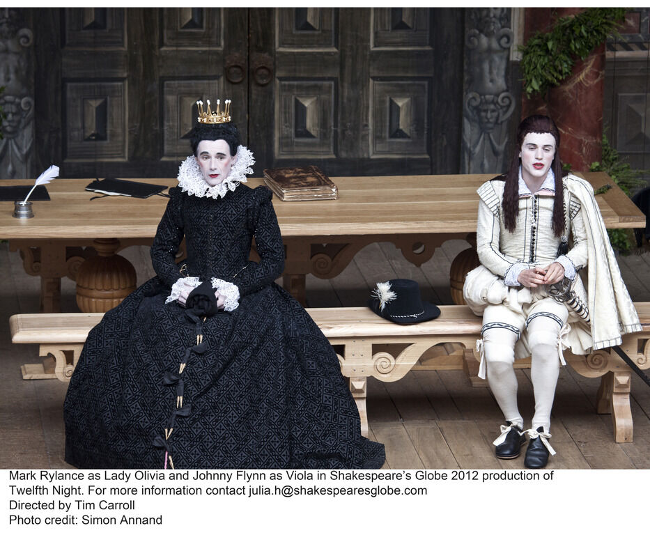 Молодой актёр и фолк-музыкант Джонни Флинн, не только игравший на сцене «Глобуса», но и сочинявший музыку к спектаклям театра (например, к постановке комедии «Как вам это понравится» – дебютном выходе Мишель Терри в качестве нового художественного руководителя и звезды «Глобуса»), справляется с этой непростой задачей великолепно. Главным же бенефисом этой «Двенадцатой ночи» стал уникальный перформанс Марка Райлэнса в роли Оливии – микс театра кабуки, комедии дель арте и хореографии кружащегося дервиша, то и дело взрывающийся жеманными заминками, охами-ахами и прочими звуковыми эффектами.