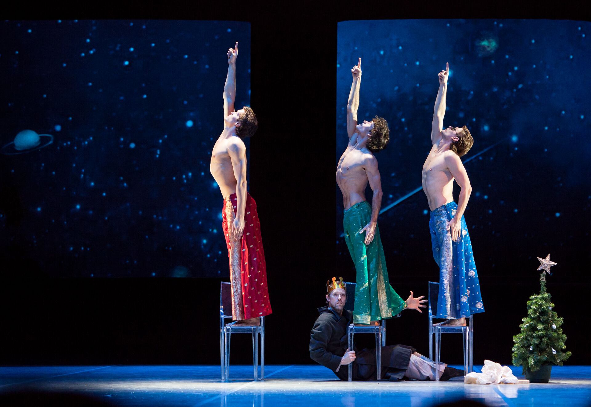 Кто ещё мог подступиться в балете к теме Рождества Христова, кроме главного балетного философа – Джона Ноймайера? Ноймайер работал над «Ораторией» почти десять лет, объединив в сквозное действие шесть кантат Баха. Каждая из этих кантат в те времена, когда они были созданы, звучала в определённый день празднования Рождества: 25, 26, 27 декабря, 1 января, в первое воскресенье нового года (волхвы у Ирода), 6 января (Богоявление, поклонение волхвов). Завораживающая, торжественная, праздничная и трагическая в предчувствиях музыка Баха не иллюстративна; не иллюстративен и спектакль Ноймайера, отсылающий зрителя к библейским временам и перекидывающий мостик во времена сегодняшние, когда люди всё так же отмечают Рождество и верят в чудо.
