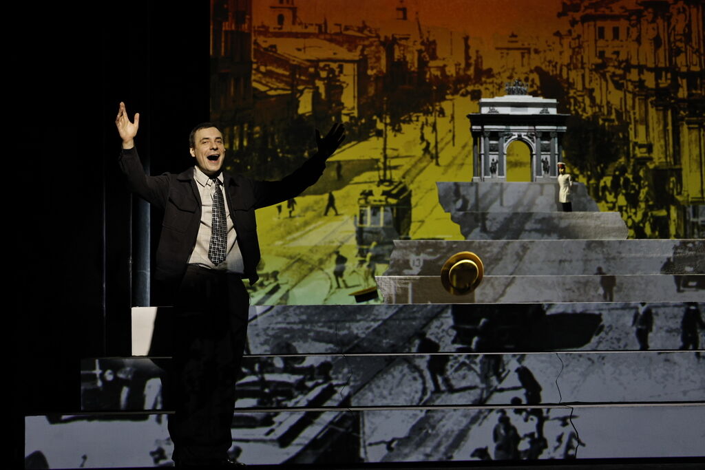 Евгений Цыганов в роли гения ХХ века не только преображается сам, но своей игрой меняет реальность, позволяя зрителям путешествовать и во времени, и в жизни, в чувствах и мыслях Образцова. Герой рассказывает о театре и людях, о приметах быта и сменах эпох, а перед зрителями – подчас с улыбкой, подчас до слез – раскрывается история становления души художника. Портретные куклы самых ярких актеров и знаменитостей играют на фоне обобщенных декораций – лестницы-подиума из белоснежных ступеней. Куклы становятся метафорами человеческих страстей, век и человек соединяются, а великий Сергей Образцов становится собеседником сегодняшних зрителей.