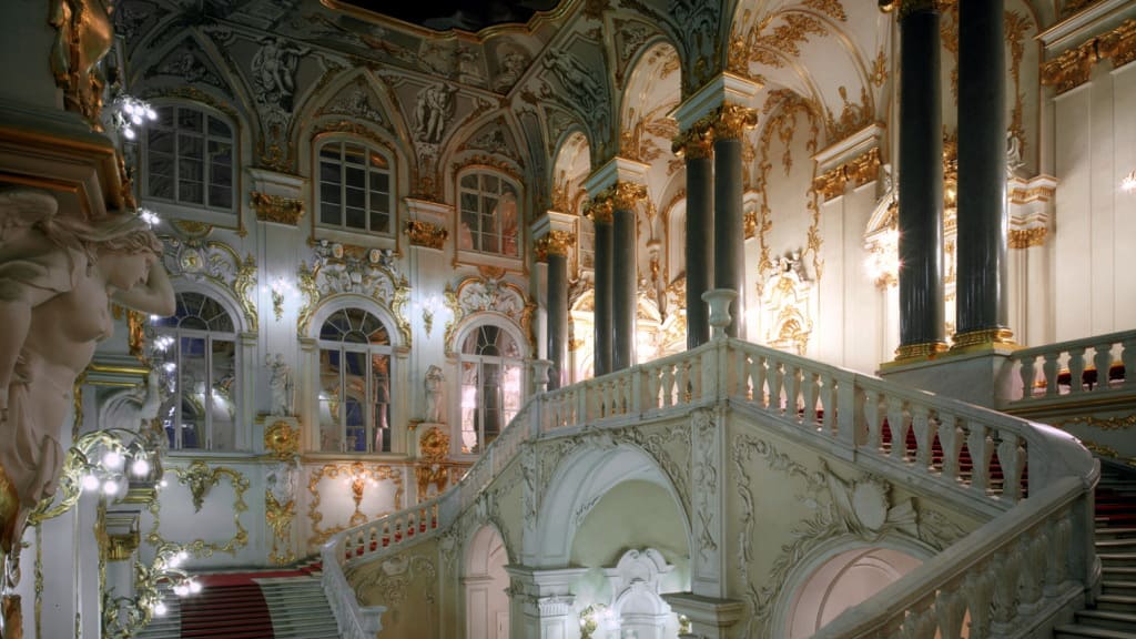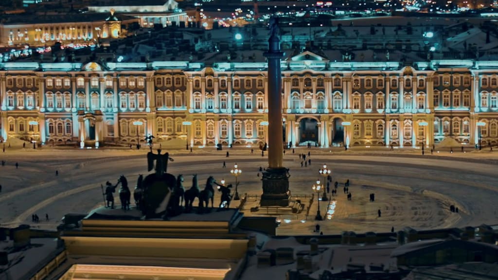 Зрелищные кадры запечатлели великолепные интерьеры Зимнего дворца и незабываемую коллекцию европейского изобразительного искусства. На экране пронесутся шедевры Леонардо, Рафаэля, Ван Дейка, Рубенса, Тициана и Рембрандта. Зрители заглянут в реставрационный центр «Старая Деревня», археологический отдел и отдел Современного искусства Государственного Эрмитажа, а также в здание Главного штаба, где хранится самое большое в мире собрание картин Матисса. Фильм посвятит в легенды Санкт-Петербурга – великий город предстанет в ночном блеске Невского проспекта, в очертаниях знаменитых набережных, мостов и каналов.