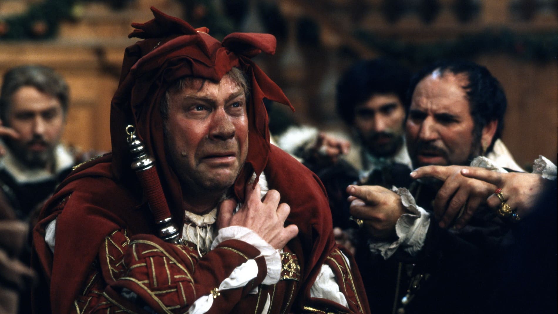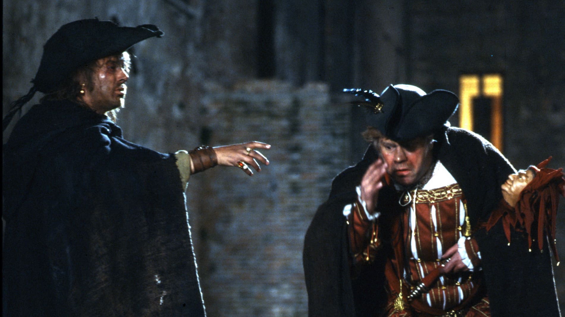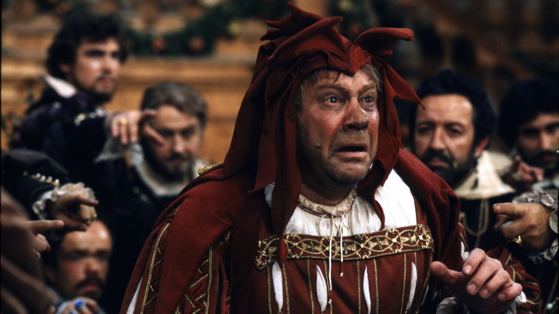 Фильм Поннеля, рассказывающий мелодраматичную кровавую историю о горбатом шуте, его похищенной дочери и мести, которая обернулась ужасной катастрофой, воспроизводит вердиевскую драму буквально: великолепные локации – пышные, но обветшалые дворцы, прибрежные трущобы, скученный город; разодетые придворные, карлики в шутовских нарядах, герцог, облачённый в позолоченные гирлянды из фруктов. Его двор не только распущен, но и развратен, антисанитария – тоже в духе времени: мыши в салате! В роли лукавого герцога, «ненавидящего верность, как чуму», – великий Лучано Паваротти. Его легендарный голос, сияющий, как солнце, и звенящий, как золото, идеально передаёт легкомысленную натуру харизматичного соблазнителя. Эдита Груберова играет нежную, трогательную Джильду с восхитительно чистым, нежным и плавным сопрано. Ингвар Виксель оживляет культового шута со всем его злобным юмором, глубокой горечью, любовью, паранойей, яростью и тоской. Венчает ансамбль исполнителей Ферруччо Фурланетто, едва узнаваемый из-за взъерошенных, как у пещерного человека, волос и гнилых зубов, – жуткий Спарафучиле. А Риккардо Шайи дирижирует оркестром Венской оперы с первобытной энергией и непринужденностью.