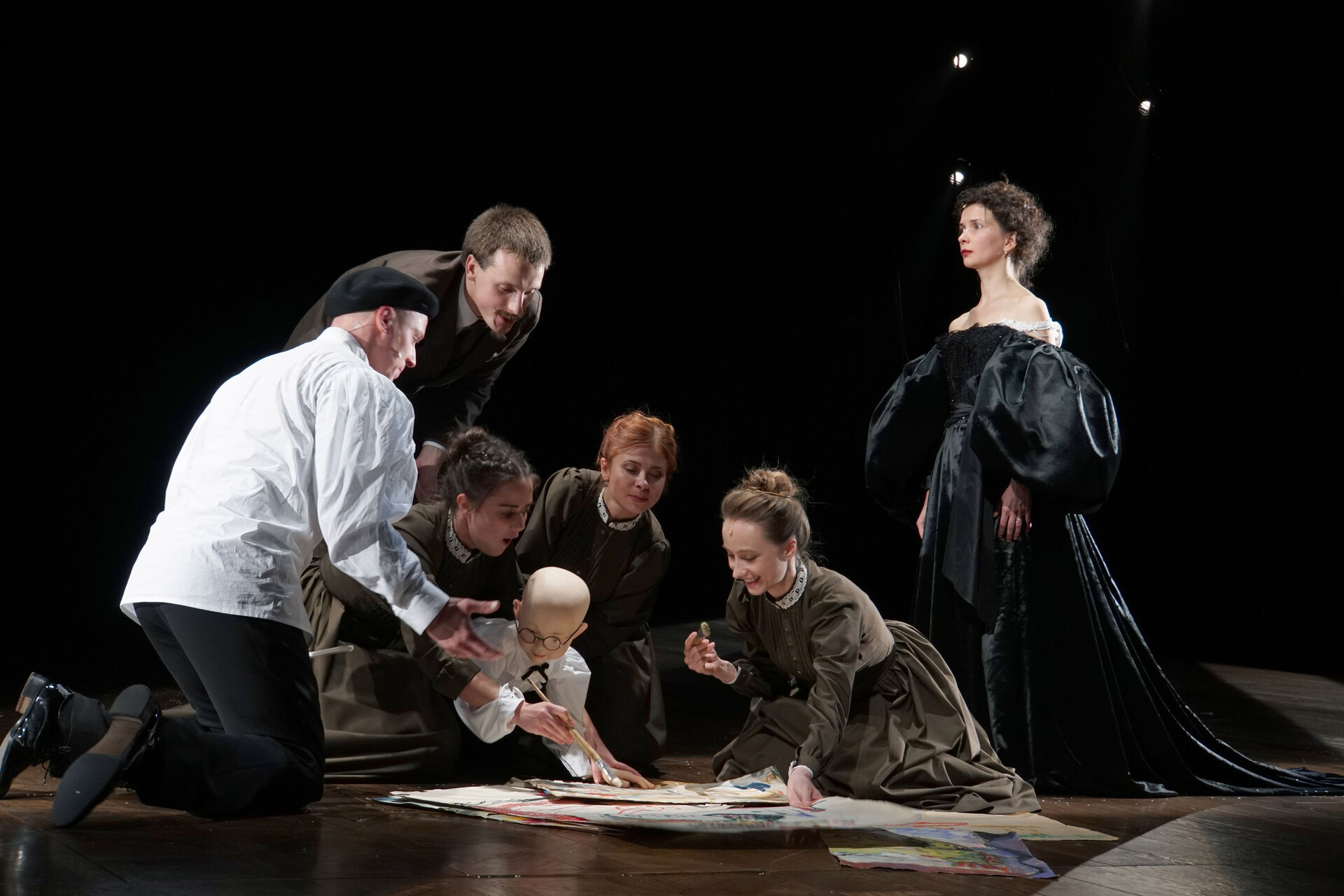 В основе спектакля – аллюзии на два романа: «Анну Каренину» Толстого и «Жизнь и судьба» Гроссмана. Также специально для этой постановки Лев Рубинштейн написал текст «Вопросы».
