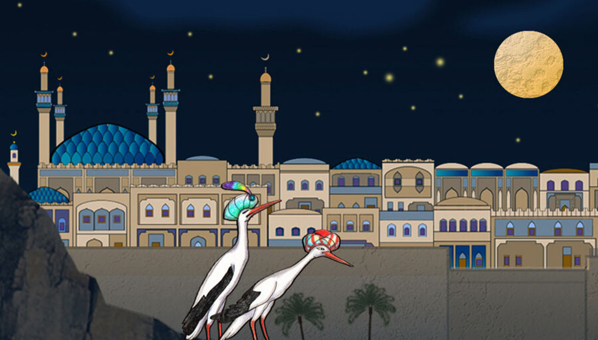 В этом сезоне слушатели знакомой сказки действительно превратятся в зрителей: художник Наталия Барабаш и дизайнер света Марат Муллин создали для постановки уникальные видеодекорации. На сцене зала имени Чайковского вырастут стройные минареты легендарной столицы, прогарцует тонконогий арабский скакун, а аист в калифском тюрбане расправит крылья, чтобы победить зло и спасти зачарованную принцессу…