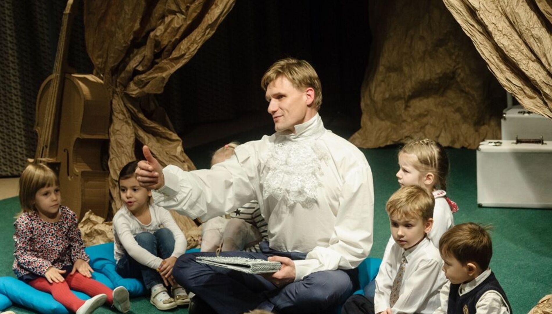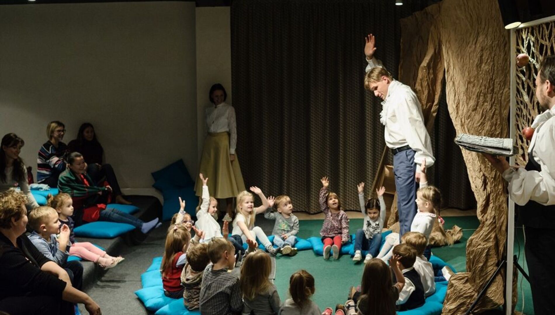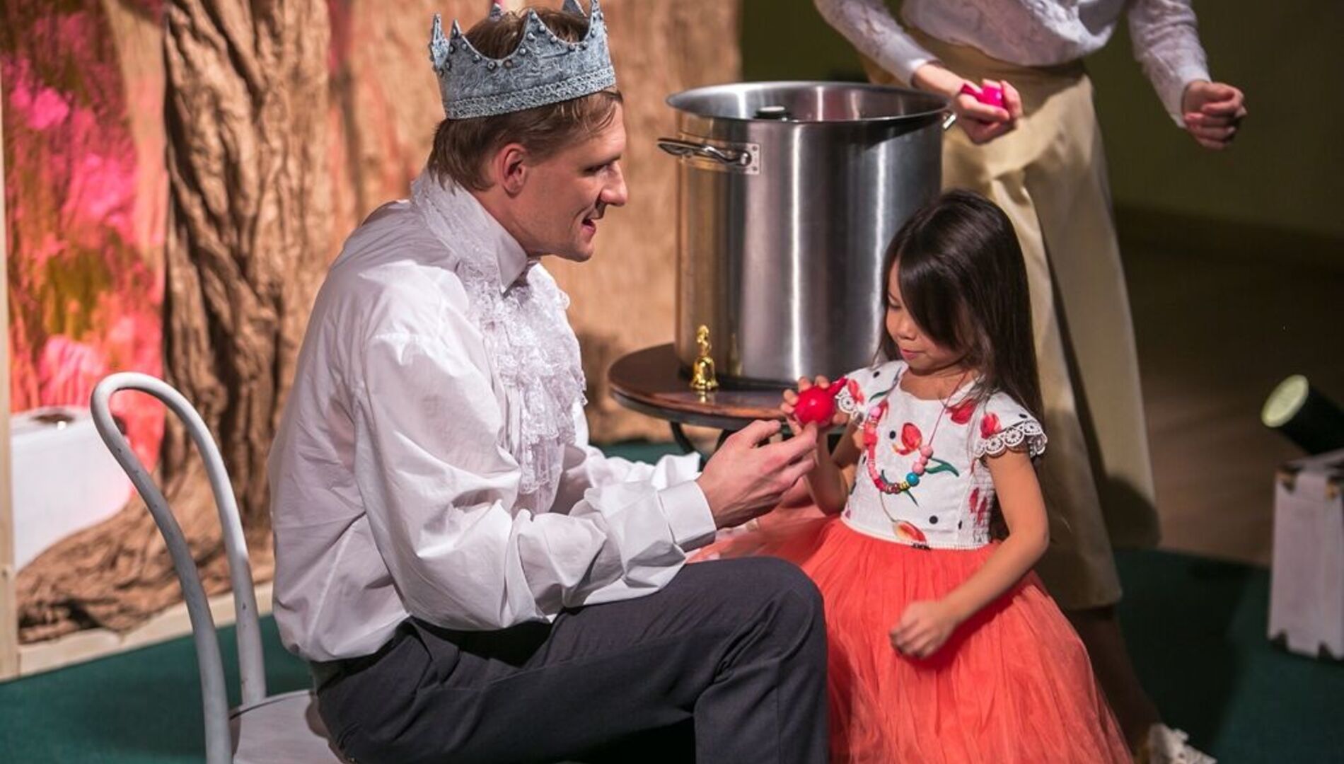 Спектакль «Яблоки желаний»Во владении Короля – яблочный сад, плоды которого исполняют любое желание. Добрый Король раздавал яблоки всем желающим и совсем скоро волшебный сад опустел, а желаний у людей не стало меньше… Маленькие зрители наполнят сад яблоками, причем сделают их своими руками из воздушных шариков, круп и специй. Теперь у каждого в доме будет своё «Яблоко желаний» из волшебного сада.
