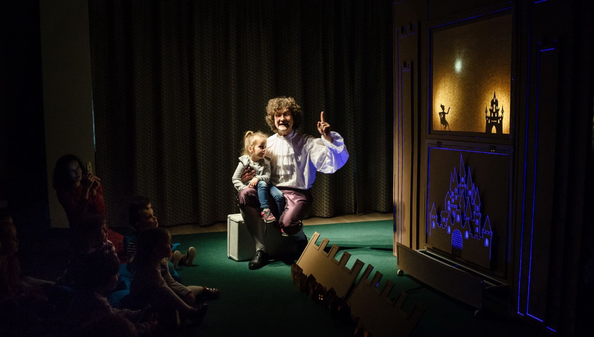 В зале свободная рассадка. Зрители размещаются на ковре и удобных подушках, поэтому в зал можно пройти только в сменной обуви или носочках. Билет необходим каждому зрителю независимо от возраста.